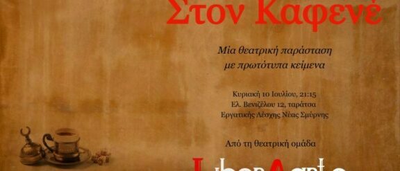 Θεατρική παράσταση από την Ομάδα LiberArte με πρωτότυπα κείμενα. Στον καφενέ διασταυρώνονται άνθρωποι και ιστορίες…