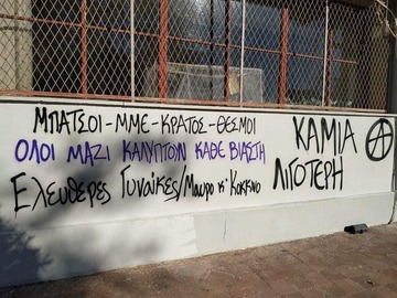 Στεκόμαστε αλληλέγγυ@ δίπλα σε όλες τις αδερφές μας που έχουν υποστεί έμφυλη βία και αγωνιζόμαστε μαζί μέχρι να δικαιωθούν. Ενάντια σε όσους θεωρούν πως οι πράξεις τους μπορούν να μείνουν ατιμώρητες λόγω της κοινωνικής και ταξικής τους θέσης. Βιαστές, μπάτσοι, δικαστές θα μας βρείτε απέναντί σας.