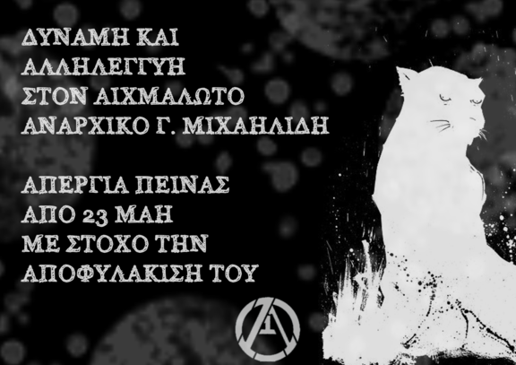 ΑΜΕΣΗ ΑΠΟΦΥΛΑΚΙΣΗ ΤΟΥ ΑΝΑΡΧΙΚΟΥ Γ. ΜΙΧΑΗΛΙΔΗ, ΑΠΕΡΓΟ ΠΕΙΝΑΣ ΑΠΟ 23/5