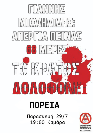 κάλεσμα : Συνέλευση αλληλεγγύης στον αναρχικό απεργό πείνας Γιάννη Μιχαηλίδη (Θεσσαλονίκη)