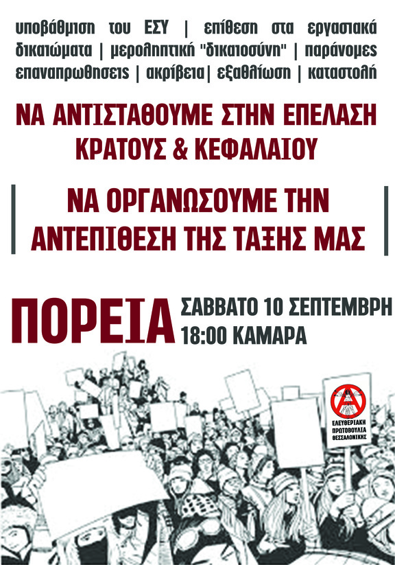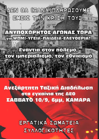 Kάλεσμα σε αντικρατική αντικαπιταλιστική πορεία Εν όψει ΔΕΘ.