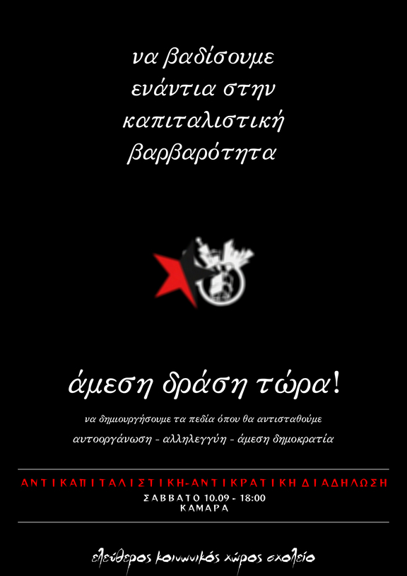 Κάλεσμα του Ελεύθερου Κοινωνικού Χώρου Σχολείο σε αντικαπιταλιστική-αντικρατική διαδήλωση ενόψει των εγκαινίων της 86ης Διεθνούς Έκθεσης Θεσσαλονίκης