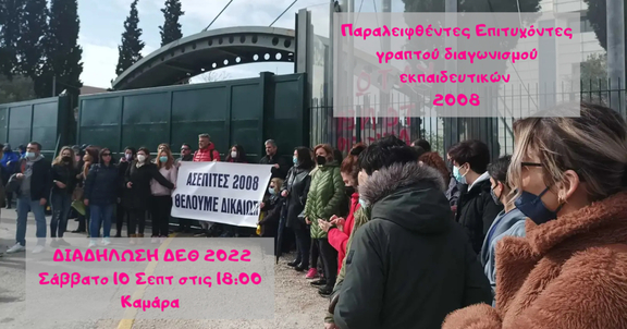 Είτε είστε επιτυχόντες είτε απλά θέλετε να υποστηρίξετε τη δικαίωσή μας, σας καλούμε στην Καμάρα για να πορευτούμε με το πανό μας στους δρόμους της Θεσσαλονίκης και να δηλώσουμε την παρουσία μας δίπλα στα σωματεία των εκπαιδευτικών και των υπόλοιπων εργαζομένων.