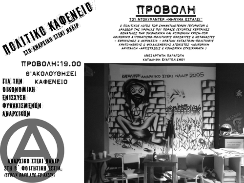 Πολιτικό καφενείο κάθε Πέμπτη μετά τις 7 στο Αναρχικό στέκι Ναδίρ