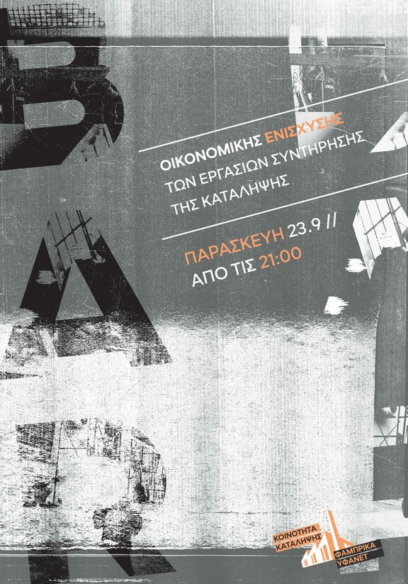 Bar οικονομικής ενίσχυσης των εργασιών συντήρησης της κατάληψης Φάμπρικα Υφανέτ