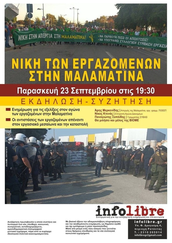 Εκδήλωση-συζήτηση για τον αγώνα των εργαζομένων στην Μαλαματίνα