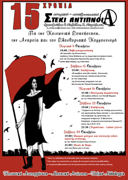 15 Χρόνια αναρχικό - αντιεξουσιαστικό στέκι Αντίπνοια Κοινωνική Αυτοοργάνωση - Μαχητική Αντίσταση - Ταξική Αλληλεγγύη Για την Κοινωνική Επανάσταση, την Αναρχία και τον Ελευθεριακό Κομμουνισμό