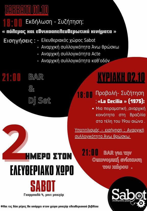 Εκδήλωση στα πλαίσια του διημέρου στον ελευθεριακό χώρο Sabot.
