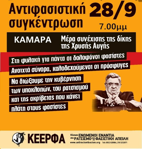 Αντιφασιστική συγκέντρωση 28/9, Μέρα συνέχισης της δίκης της Χρυσής Αυγής