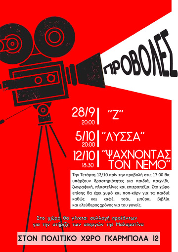 Στο χώρο θα γίνεται συλλογή προιόντων για την στήριξη των απεργών της Μαλαματίνα