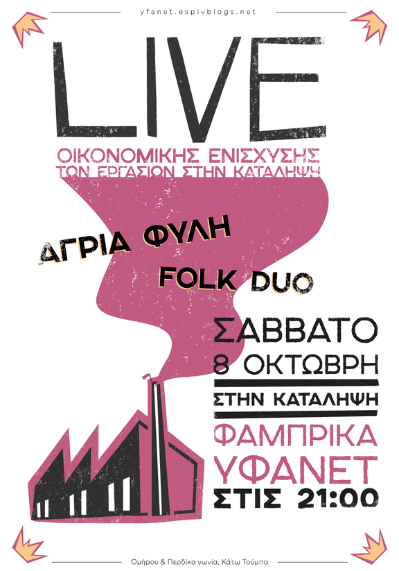 Συναυλία οικονομικής ενίσχυσης των εργασιών συντήρησης της κατάληψης Φάμπρικα Υφανέτ