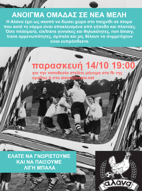 ακριβής τοποθεσία : για την τοποθεσία στείλτε μήνυμα στο fb της ομάδας (@alana.selforganized.womensfootball) ή στο alana@espiv.net