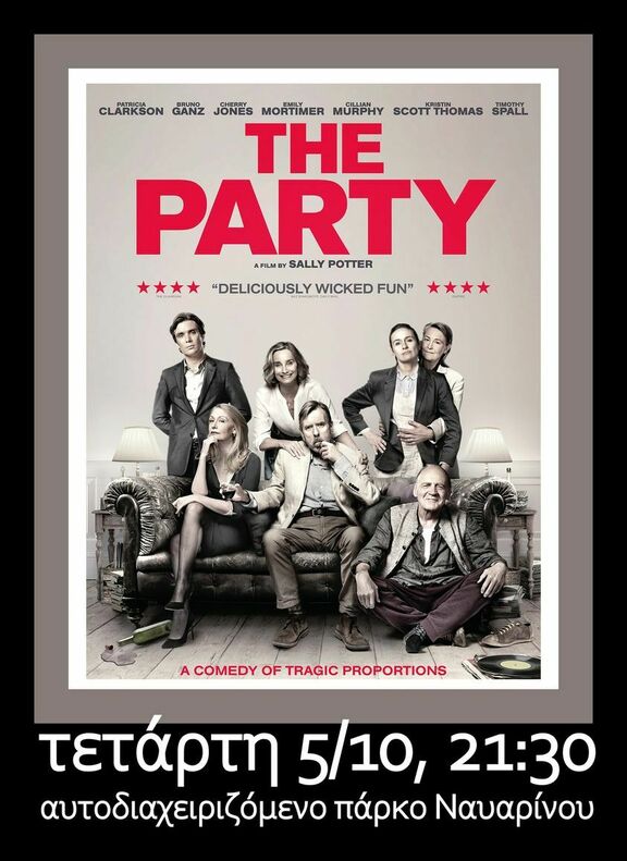 Την Τετάρτη 5 Οκτώβρη διπλή προβολή που θα είναι και η τελευταία της σεζόν. Στις 20:00 θα ξαναπροβάλουμε το δεύτερο μέρος του 4ωρου Woodstock για όσους δεν μπόρεσαν να το δουν και στις 21:30 το εξαιρετικό ΤΗΕ PARTY (2017) της Σάλι Πότερ.