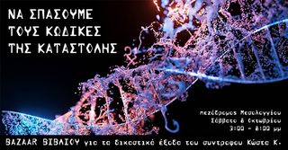 Μπαζάαρ βιβλίου για την οικονομική ενίσχυση του σύντροφου Κώστα Κ. που βρισκεται αντιμέτωπος με διώξεις, στηριζόμενες σε μεθοδεύσεις της dna "βιομηχανίας" κατηγορητηρίων