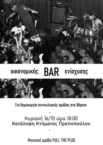 Το φθινόπωρο του '22 μαζευτήκαμε άτομα από την κατάληψη του κτήματος Πραποπούλου και τις γειτονιές του Χαλανδρίου στο πλαίσιο της δημιουργίας μιας νέας συναυλιακής ομάδας στα Βόρεια. Ως μέρος της αυτοοργανωμένης μουσικής σκηνής ο τόπος έκφρασής μας βρίσκεται στις καταλήψεις και στους εν δυνάμει ελεύθερους χώρους που μπορούν να δώσουν πάτημα για έκφραση, δημιουργία και αλληλεγγύη. Προχωράμε στη σύσταση της ομάδας PULL THE PLUG με στόχο τις μπρίζες του κτήματος Πραποπούλου. 0 ευρώ η kWh !!!