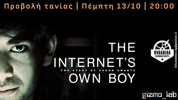 Συνεχίζοντια οι προβολές από το gizmo_lab την Πέμπτη 13 Οκτωβρίου στις 20:00 με την βιογραφική ταινία για τον Aaron Swartz.