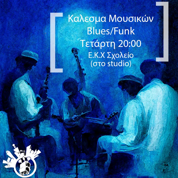 "To Blues/Funk Jam ανοίγει τις πόρτες του, και προσκαλεί καινούργιους μουσικούς! Ελάτε, είτε έχετε πολλές είτε λίγες γνώσεις, να παίξετε μαζί μας, να γνωριστούμε και να γνωρίσουμε την μουσική μαζί καλύτερα.