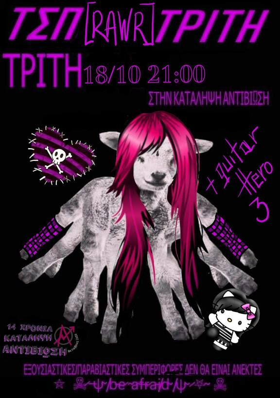Είναι βραδύ τρίτης, ακούς MCR και κάνεις μαραθώνιο twilight. Φοράς έναν μαύρο κορσέ με ασορτί δαντέλα γύρω του και μια μαύρη δερμάτινη μίνι φούστα, ροζ διχτυωτό καλσόν και μαύρες αρβύλες. Για μακιγιάζ μαύρο κραγιόν, λευκό foundation, μαύρο eyeliner και κόκκινη σκιά. Κάπου στο βάθος τα φιλαράκια παίζουν guitar hero 3. Όχι δεν έχεις μεταφερθεί στο παρελθόν αλλά στο Τσπρμπάρ της Τρίτης! Σας περιμένουμε να κάνουμε παρέα και να θυμηθούμε αυτή την αείμνηστη εποχή