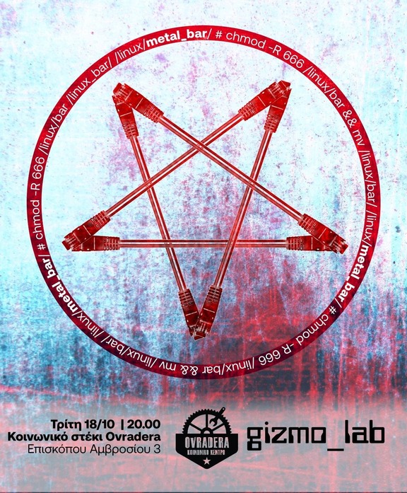 Metal bar οικονομικής ενίσχυσης του gizmo_lab, του hacklab που στεγάζεται στο κοινωνικό κέντρο Ovradera, την Τρίτη 18 Οκτωβρίου από τις 20:00.