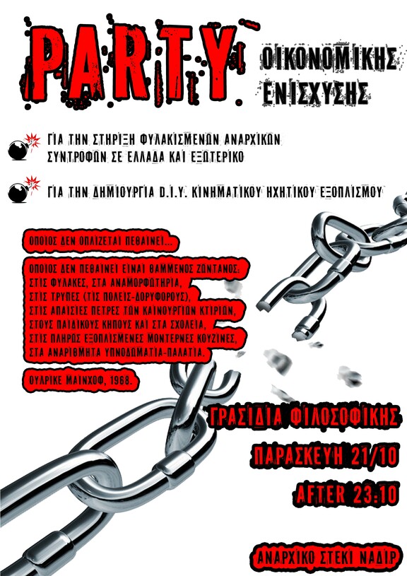 1)Για την οικονομική στήριξη σε φυλακισμένους αναρχικούς συντρόφους σε Ελλάδα και εξωτερικό,