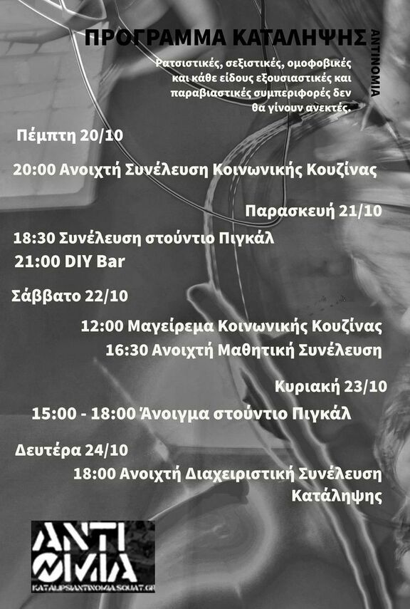 Πρόγραμμα εβδομάδας της Κατάληψης Αντινομία παλιό ψυχιατρείο