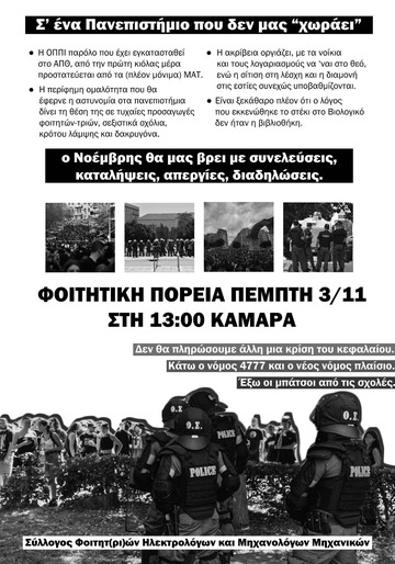Στηριζουμε το μπλοκ του Σ.Φ. ηλμηχ στην φοιτητική πορεία την Πέμπτη 3/11 στη 1μμ Καμάρα