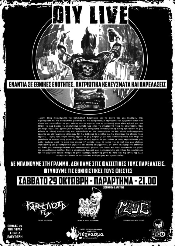 DIY LIVE ενάντια σε εθνικές ενότητες, πατριωτικά κελεύσματα και παρελάσεις το σάββατο 29 οκτώβρη…