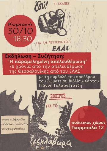 Εμείς συζητάμε, με τη συμβολή του προέδρου του Σωματείου Βιβλίου-Χάρτου και ιστορικού Γιάννη Γκλαρνέτατζη, για όσα πραγματικά συνέβησαν στην πόλη μας, τέτοιες μέρες πριν 78 χρόνια, όταν ο ΕΛΑΣ απελευθέρωνε τη Θεσσαλονίκη.