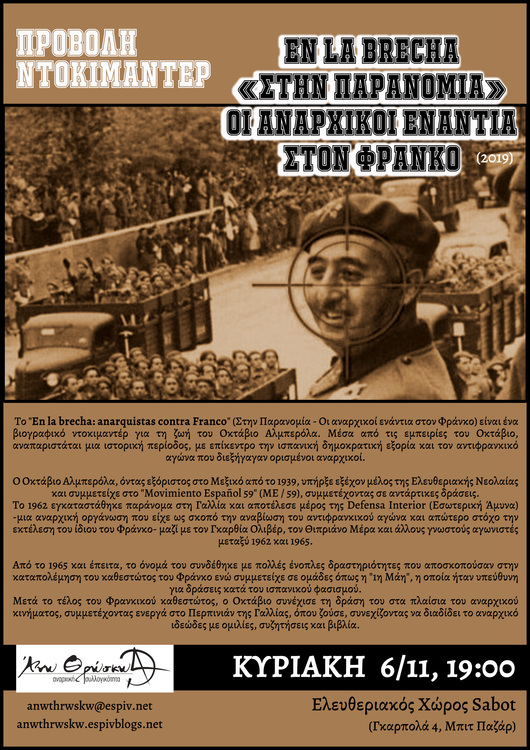 Προβολή Ντοκιμαντέρ: EN LA BRECHA, Οι αναρχικοί ενάντια στον Φράνκο
