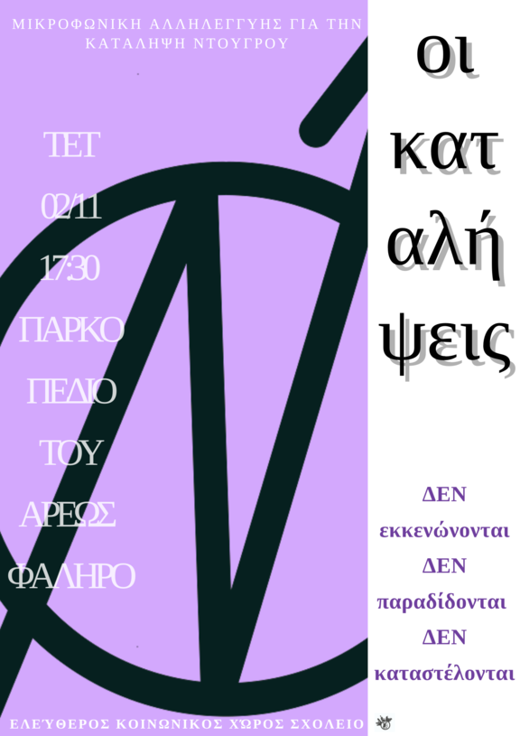 Από τη μία, λοιπόν, κτήρια που εκκενώνονται και δεν αξιοποιούνται και από την άλλη κτήρια που, χρησιμοποιούνται προς ιδιωτικό συμφέρον μακριά από τις πραγματικές ανάγκες της κοινωνίας. Η πραγματικότητα, όμως, είναι που έρχεται και αναδεικνύει τις έκδηλες αντιφάσεις των εν λόγω μεθοδεύσεων, απογυμνώνοντας τους σκοπούς του κράτους: Οι καταλήψεις θα πρέπει με τον ένα ή άλλον τρόπο να παύονται, οι πόλεις να αποστειρώνοται. Σε αυτό το περιβάλλον, της διαρκούς ανασφάλειας, του φόβου, της εκμετάλλευσης, της χωρίς όρια μεγέθυνσης του καπιταλιστικού κόσμου υπέρ της κερδοφορίας εις βάρος των ζωών μας, του θανάτου που συνηθίζουμε, των παραβιαστικών συμπεριφορών που αρνούμαστε να συνηθίσουμε, η υπεράσπιση των καταλήψεων και των κοινωνικών χώρων δεν είναι μόνο ένα στοίχημα αναμέτρησης με την καταστολή, αλλά ένα στοίχημα για να δημιουργήσουμε εκείνους τους όρους που βάζουν την ζωή και τον άνθρωπο στο επίκεντρο, χωρίς διαμεσολαβήσεις και ανισότητες. Θέλοντας να δημιουργήσουμε μέσα και έξω από τις καταλήψεις τα πολιτικά, κοινωνικά και πολιτισμικά αναχώματα στην ρήξη μας με το σύστημα του θανάτου, στην διαρκή προσπάθειά μας να θεσμίσουμε εμείς οι ίδιοι και οι ίδιες τις ζωές μας.