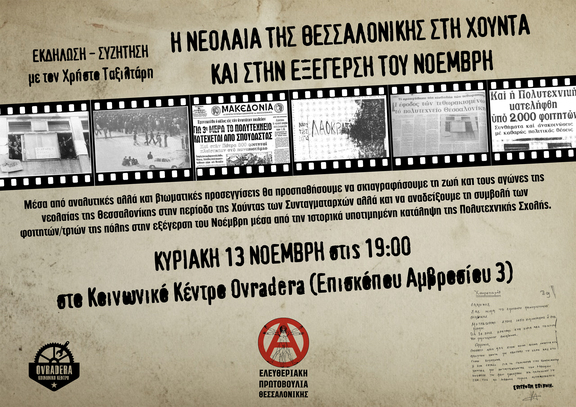 Εκδήλωση | Η νεολαία της Θεσσαλονίκης στη Χούντα και στην εξέγερση του Νοέμβρη