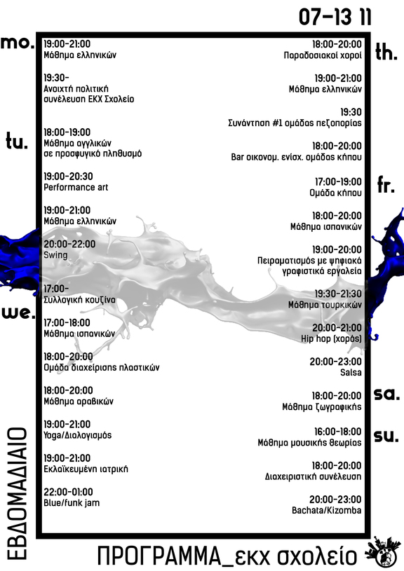 Το πρόγραμμα ελεύθερων μαθημάτων και δραστηριοτήτων στον ΕΚΧ Σχολείο για την εβδομάδα 07-13/11.