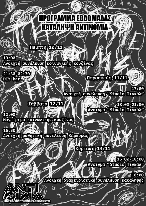 Εβδομαδιαίο πρόγραμμα Κατάληψης Αντινομία (π.ψυχιατρείο)
