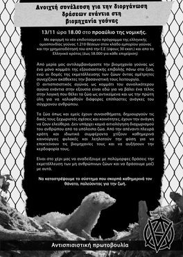 Ανοιχτή συνέλευση ενάντια στην βιομηχανια της γουνας