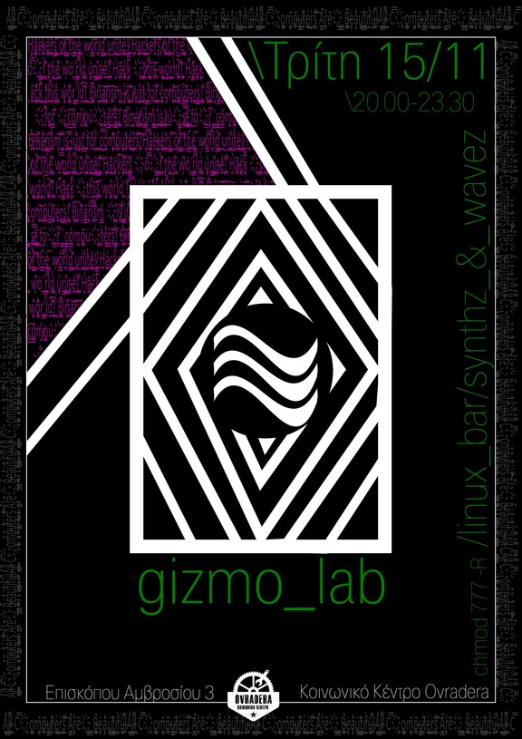 "Linux" Bar οικονομικής ενίσχυσης του gizmo_lab, του hacklab που στεγάζεται στο κοινωνικό κέντρο Ovradera, την Τρίτη 15 Νοεμβρίου από τις 20:00.