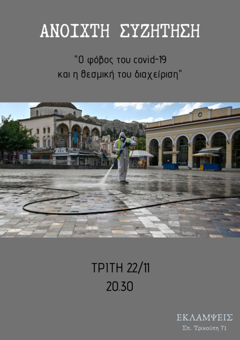 Ανοιχτή συζήτηση για τον φόβο του covid-19 και την θεσμική του διαχείριση (θα υπάρξει σύντομη εισαγωγική εισήγηση και θα ακολουθήσει κουβέντα)