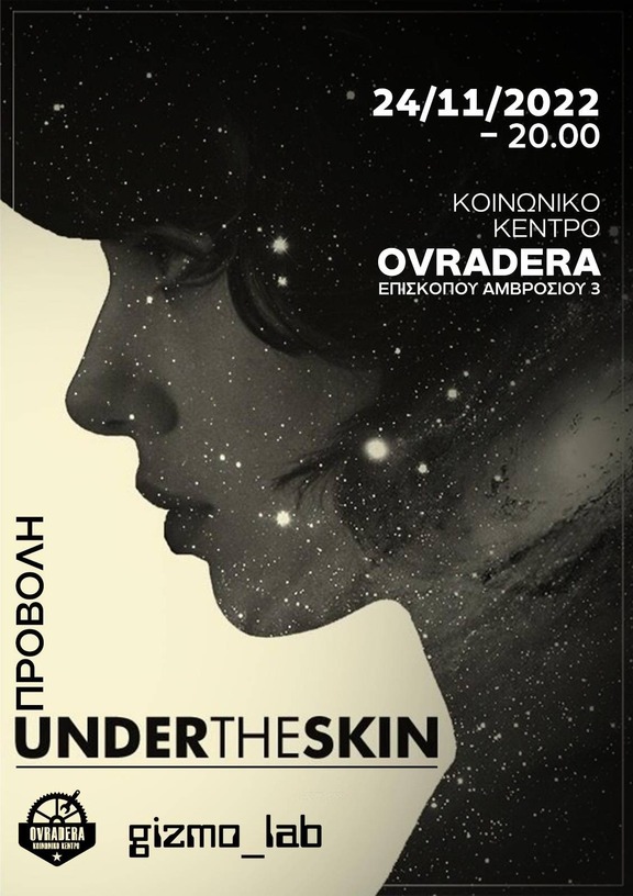 Προβολή της ταινίας "Under the skin" (2013) την Πέμπτη 24 Νοεμβρίου στις 20:00 στο Κοινωνικό Κέντρο Ovradera, Επισκόπου Αμβροσίου 3, από το gizmo_lab.