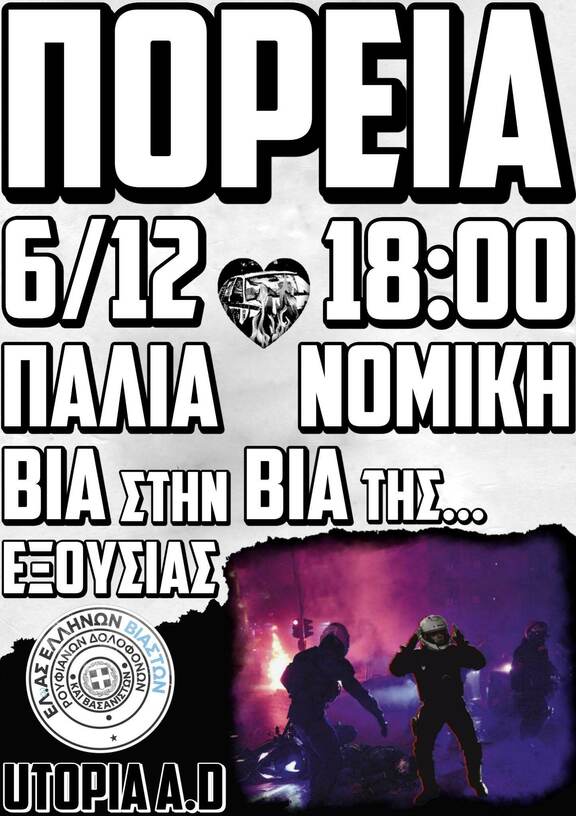 Κάλεσμα σε πορεία μνήμης για την κρατική δολοφονία του Αναρχικού μαθητή Αλέξανδρου Γρηγορόπουλου από τον μπάτσο δολοφόνο Κορκονέα. Τρίτη 6 Δεκέμβρη ώρα 18:00 στον πεζόδρομο της παλιάς νομικής.