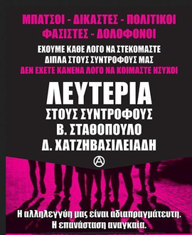 Λευτεριά στους αναρχικούς Βαγγέλη Σταθόπουλο και Δημήτρη Χατζηβασιλειάδη