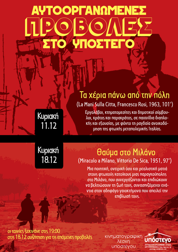 Αυτοοργανωμένες προβολές ταινιών στο Υπόστεγο τον Δεκέμβριο: