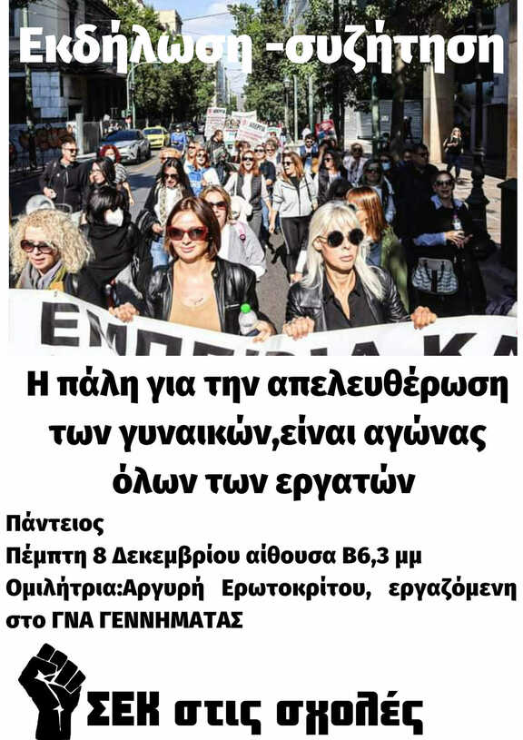 Εκδήλωση: Η πάλη για την απελευθέρωση των γυναικών, είναι αγώνας όλων των εργατών