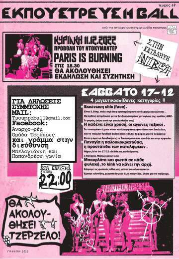 Βρίσκουμε πολύ σημαντικό σαν κουίρ άτομα να μην ξεχνάμε την ιστορία μας, και στη συνέχεια, να την αναπαράγουμε με δικούς μας όρους. Είναι σημαντικό να θυμόμαστε ότι η ιστορία αυτή είναι γραμμένη πάνω σε πλάτες έγχρωμων τρανς γυναικών που η συμβολή τους έχει ξεχαστεί πάμπολλες φορές με σκοπό την κερδοσκοπία και την αποπλαισιομένη χρήση τους. Θεωρούμε ότι η επαναζωπύρωση της ιστορίας μας πρέπει να γίνεται σε δικούς μας χώρους με τα δικά μας μέσα, και όχι από την κυρίαρχη αφήγηση, με μίντια όπως το Pose που καπηλεύονται την κοινή μας ιστορία και την καταντάνε έναν απόηχο του τι πραγματικά αναπαριστούσε. Σας καλούμε σε αυτή την εκδήλωση, μέσα σε έναν κατειλημμένο χώρο που στεγάζει τις ιδέες μας, ώστε να συνδεθούμε με μια ιστορία που τόσο απεγνωσμένα θέλουν να ξεχάσουμε με την συνεχή της αφομοίωση.