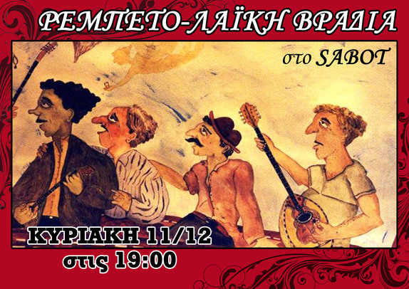 Ρεμπετο-λαϊκή βραδιά στο Sabot για την οικονομική ενίσχυση του χώρου.