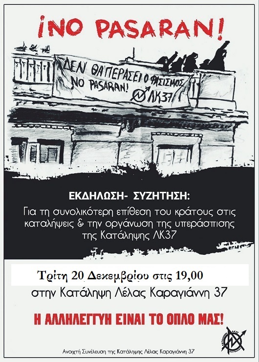 Για τη συνολικότερη επίθεση του κράτους στις καταλήψεις & την οργάνωση της υπεράσπισης της Κατάληψης ΛΚ37