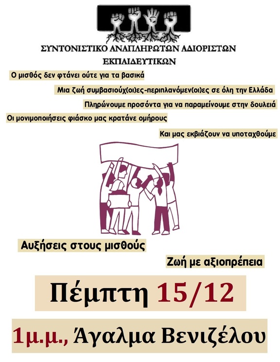 Κάλεσμα στην απεργιακή συγκέντρωση, την Πέμπτη 15/12-12:30, στο Άγαλμα Βενιζέλου.