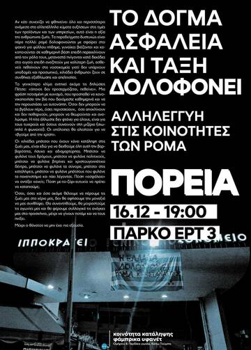 Στηρίζουμε την πορεία αλληλεγγύης στις κοινότητες των Ρομά σήμερα 16/12 19:00 στο πάρκο απέναντι από την ερτ3.