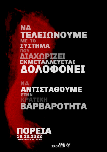 Καλούμε σε πορεία αντίστασης, Παρασκευή 15 Δεκεμβρίου στις 19:00, στο πάρκο της ΕΡΤ3