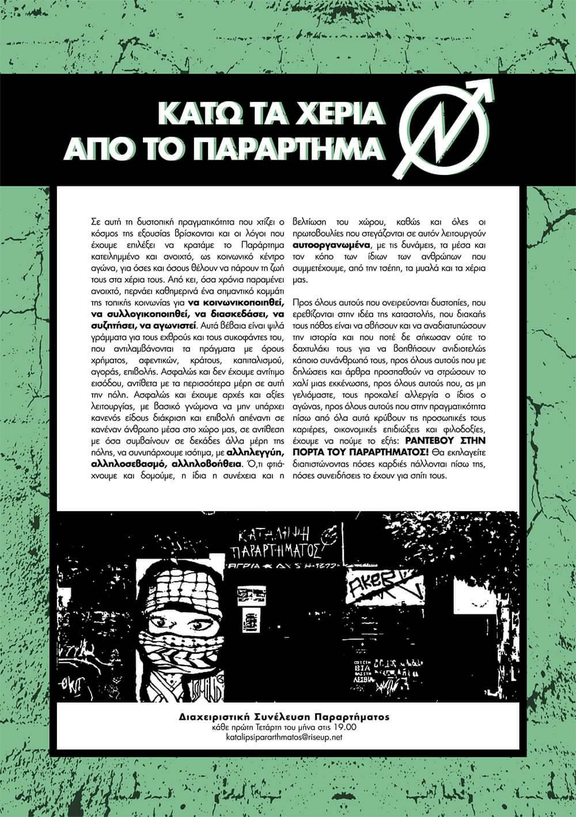 ΚΑΤΩ ΤΑ ΧΕΡΙΑ ΑΠΟ ΤΗΝ ΚΑΤΑΛΗΨΗ ΠΑΡΑΡΤΗΜΑΤΟΣ|Στηρίζουμε την αντικατασταλτική διαδήλωση αλληλεγγύης στην Κατάληψη Παραρτήματος ΣΑΒΒΑΤΟ 17/12, 12.00 ΠΑΡΑΡΤΗΜΑ