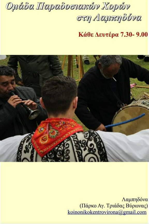 Εορταστικό παραδοσιακό γλέντι απο την ομάδα χορών της Λαμπηδόνας! Ελάτε να γνωριστούμε, να χορέψουμε, να τραγουδήσουμε και να περάσουμε όμορφα!