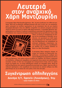 Συγκέντρωση αλληλεγγύης στον αναρχικό Χάρη Μαντζουρίδη. Δίκη Δευτέρα 9/1, Εφετείο (Λουκάρεως), 12:00